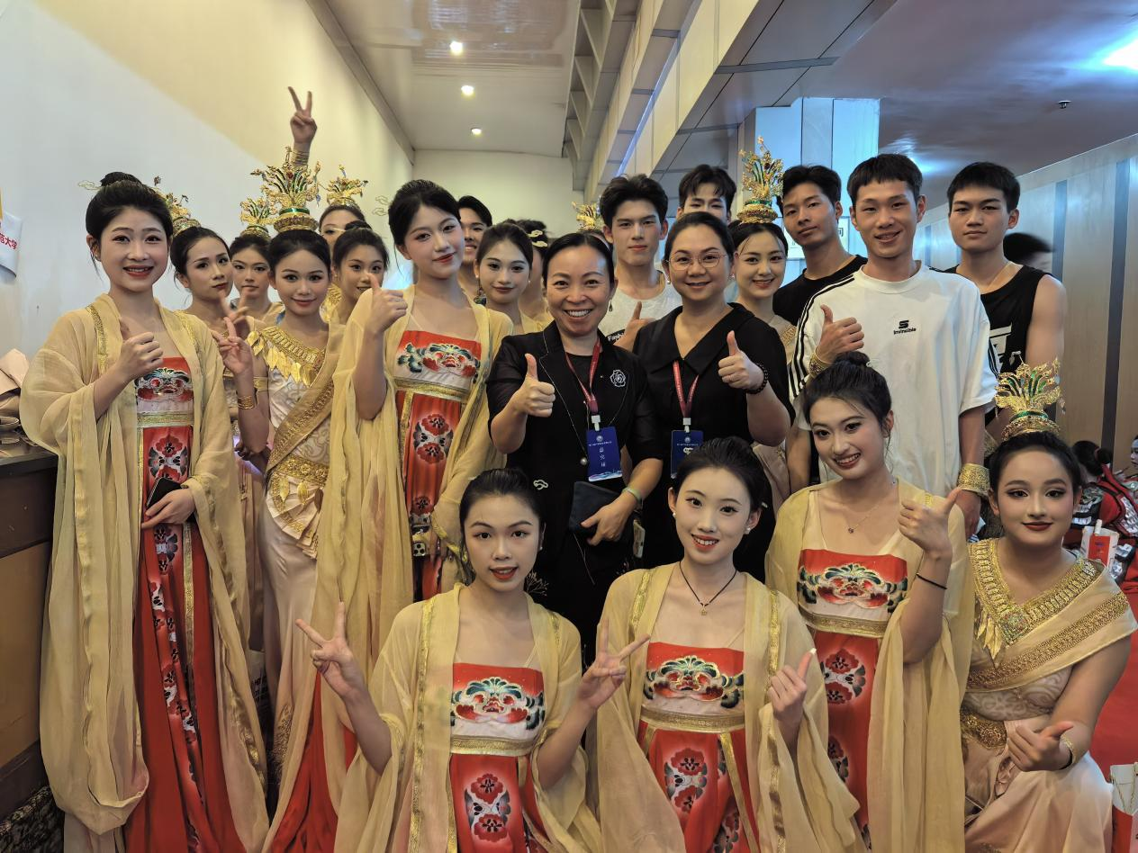 本次大赛从民航服务形象与礼仪、民航知识与英语、民航安全服务技能、团体表演四个赛项展开团体赛的竞技。167net必赢入口高度重视,经过层层选拔,专业老师进行一个多月的专业技能培训指导和赛前模拟来帮助参赛学子能在比赛中取得佳绩。在团体表演赛中,舞蹈队的25名学生精彩演绎舞蹈作品《缅花·盛唐》,展现中国唐朝传统舞蹈与缅甸传统舞蹈的交相融合,体现中国大唐盛世的境况;在民航服务形象与礼仪比赛中,167net必赢入口参赛队伍通过舞蹈和走秀的方式主要展现东南亚文化和岭南文化的交流,最终167net必赢入口有9名选手晋级;在民航知识与英语、民航安全服务技能比拼上,选手们使出浑身解数,用扎实的理论知识、精湛的技能水平和专业的礼仪形象诠释了“匠心筑梦新时代、精技强能向未来”的大赛主题精神。