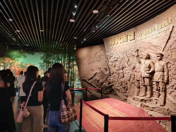 抵达博物馆后,同学们首先参观了“烽火南疆——广西近现代革命史陈列”展厅。该展厅以1840年至1949年广西近现代革命历史为主线,通过丰富的文物和史料,展现了广西人民在太平天国运动、辛亥革命、抗日战争以及解放战争等重要历史时期的光辉事迹。同学们认真聆听讲解,仔细观察史料,深刻体会到革命先辈们为民族独立和人民解放所付出的巨大牺牲,以及他们对革命事业的无比忠诚。