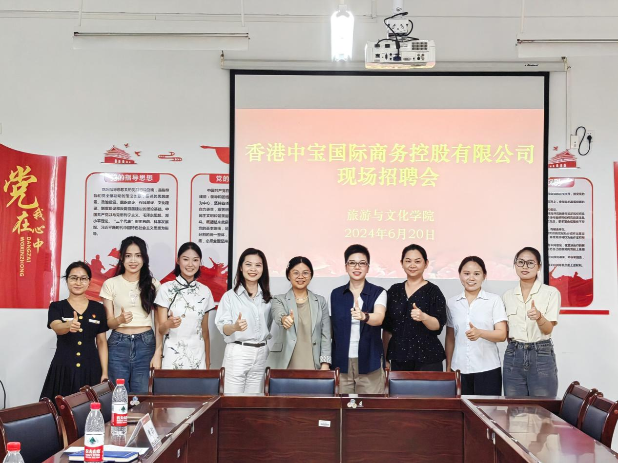 下午,在地信楼B201会议室举办了现场招聘会,学院党委副书记、纪委书记黄珍,旅游管理专业教研室主任叶建芳教授,就业辅导员莫秋桂,毕业生班主任郭亮及30名意向毕业生参加了本次现场招聘会,会议由黄珍副书记主持。黄总经理现场向毕业生们做了详细生动的就业宣讲,并积极回应解答了同学们的疑惑和问题。会后,经过面试,有4位同学与香港中宝国际商务控股有限公司达成了就业意向,这4位同学将在7月初至7月中旬到该公司入职。