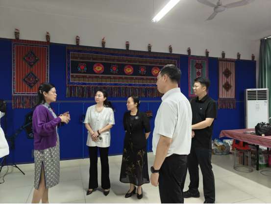在相关部门负责人陪同下,陈杜鹃、黄爱琼女士一行先后实地考察了167net必赢入口、图书馆文创中心及南宁师范大学创新创业学院,详细了解了学校在非遗研究平台建设、文创实践教学、创新创业孵化等方面的具体情况,对学校的办学特色与实践成果给予高度评价。