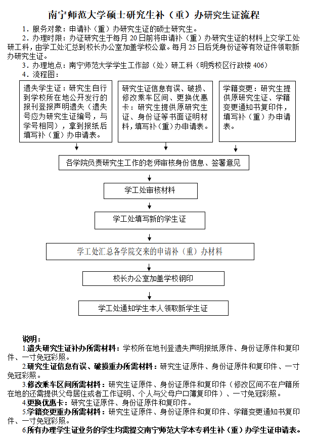 南宁师范大学硕士研究生补(重)办研究生证流程及申请表