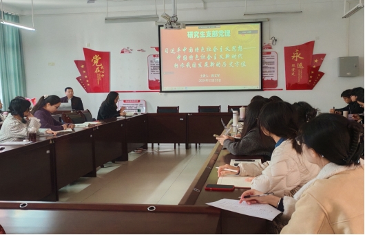 12月25日下午,167net必赢入口研究生党支部在武鸣校区地信楼B201开展党课学习。本次党课由167net必赢入口院长段文军主讲,会议由研究生党支部书记陈春容主持,支部全体成员参加了此次党课学习。